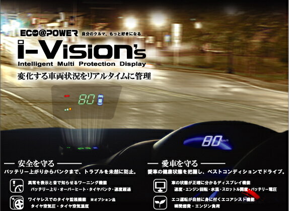 | i-Vision'sはHUD(Head-Up-Display)方式を採用、運転中の視線移動を最短距離にする事により、安全に現在の車両情報を確認できます。タイヤ空気圧・温度・スピード・回転数・etc、様々な表示を可能にします。見やすい表示を可能にする為CDSセルを採用し、周りの明るさに応じて3段階に自動調光します。簡単取付本体は、ダッシュボードに付属のマジックテープで取付けOBD2診断カプラーを使用する為、ワンタッチ接続4輪に取り付ける空気圧センサーはタイヤバルブに取り付けるのみの簡単取り付け。センサーはコンパクト設計な為、スマートに取り付けられます。詳しくはメーカーHPをご覧下さい。取付け主要時間はおおよそ15分〜30分程です。※納期が掛かる場合がございますので、ご確認下さい。■掲載画像は商品イメージです■こちらの商品をお買上げいただく際の送料はSサイズです | |